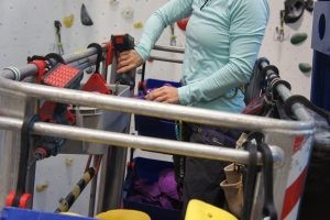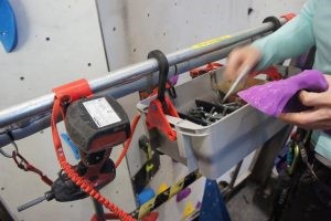 Alternativ könnt ihr auch längere Schlingen nehmen und diese durch Karabiner beliebig verkürzen um den restlichen Freiraum am Steiger vollendes nutzen zu können. Die Kisten können so auch an den unzugänglichen Stellen untergebracht werden, volle Raumausnutzung.