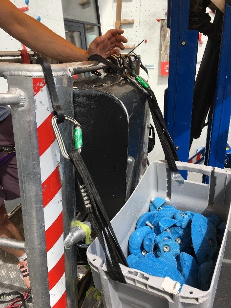Außerdem ist es so möglich auf zwei übereinander platzierte Kiste von innen gleichzeitig zugreifen zu können. Griffe oben, Tritte unten, oder gute Griffe oben, schlechte Griffe unten, ihr habt die Wahl und alles im Griff.